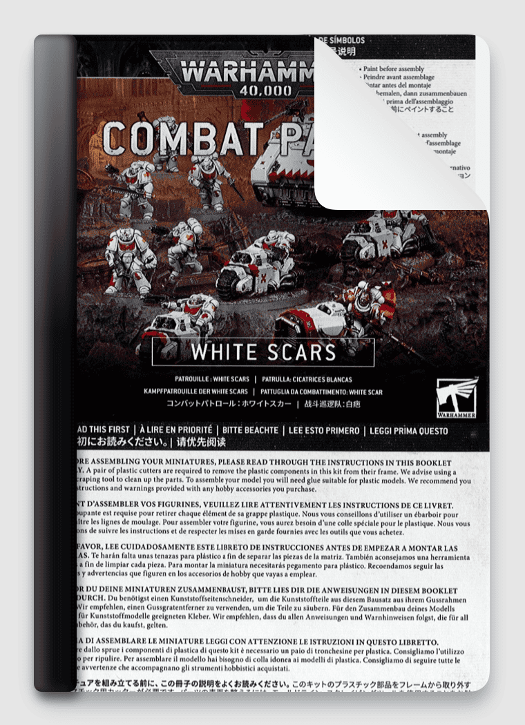 Download a Free PDF copy of the Instructions Booklet for How To Build Combat Patrol White Scars – Warhammer 40’000 (40K). Full Assembly Instructions and step-by-step user guide for how to build Combat Patrol White Scars, available in PDF format as a Free Digital Download.