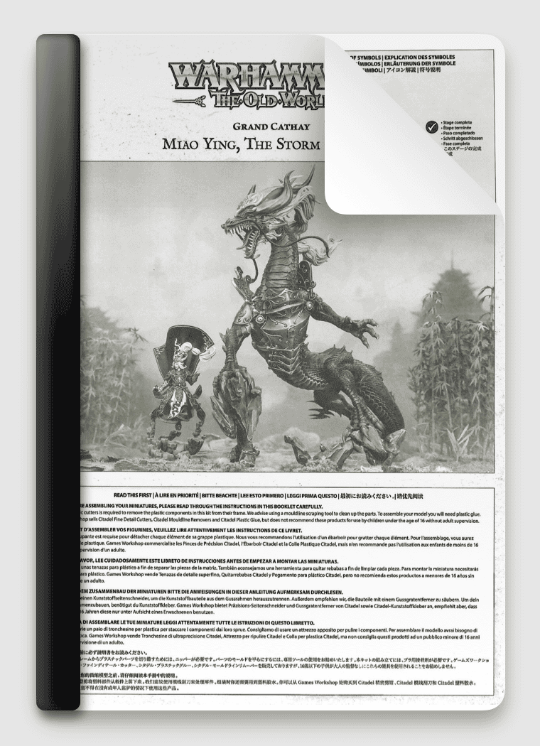 Includes a step-by-step user guide for how to build Miao Ying, The Storm Dragon, from plastic sprue, through to a completed model which is fully assembled and ready to paint.