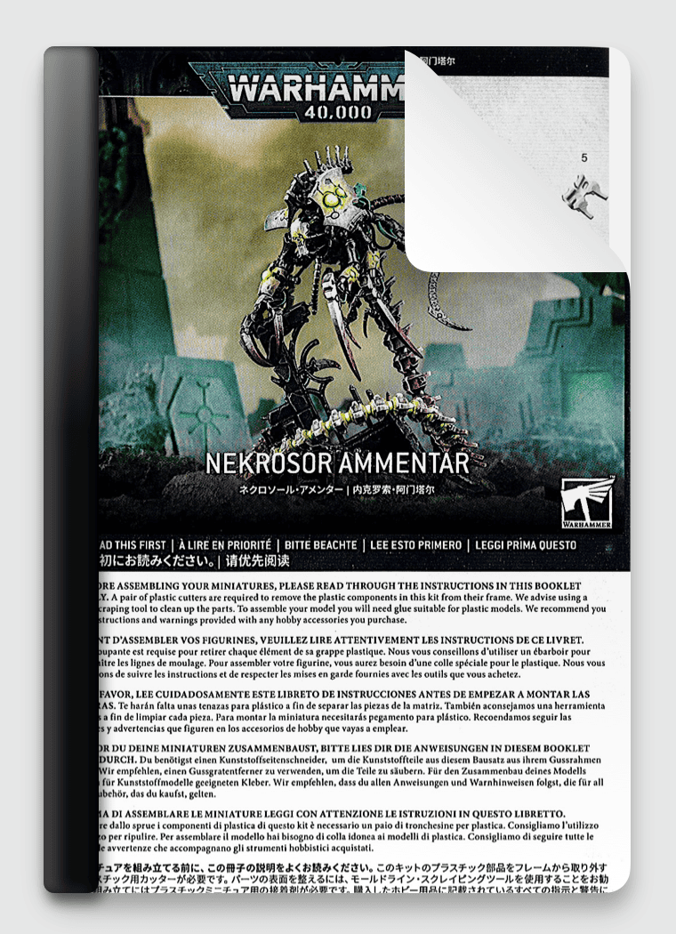 Includes a step-by-step user guide for how to build Nekrosor Ammentar, from plastic sprue, through to a completed model which is fully assembled and ready to paint.