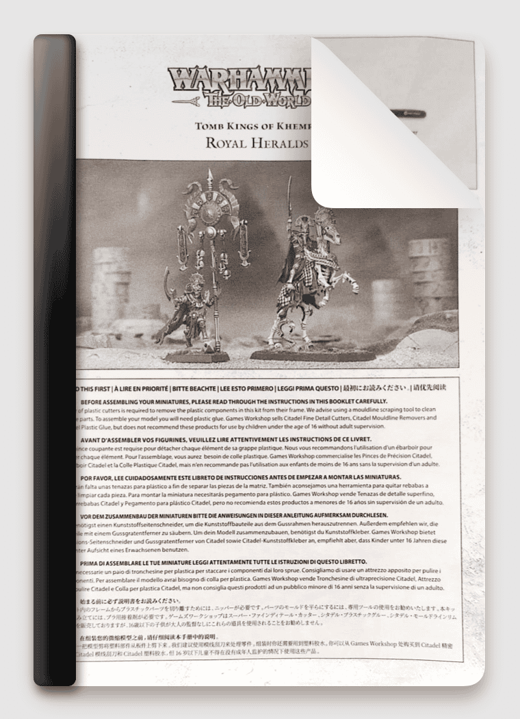 Includes a step-by-step user guide for how to build Royal Heralds, from plastic sprue, through to a completed model which is fully assembled and ready to paint.