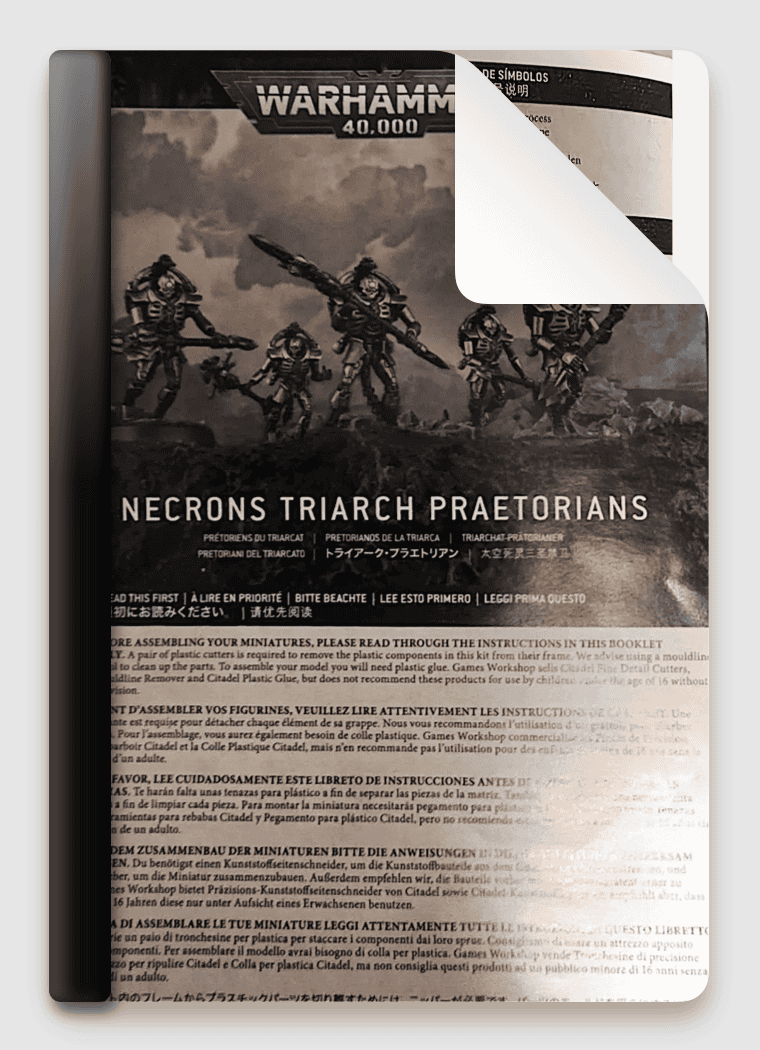 Includes a step-by-step user guide for how to build Triarch Praetorians, from plastic sprue, through to a completed model which is fully assembled and ready to paint.