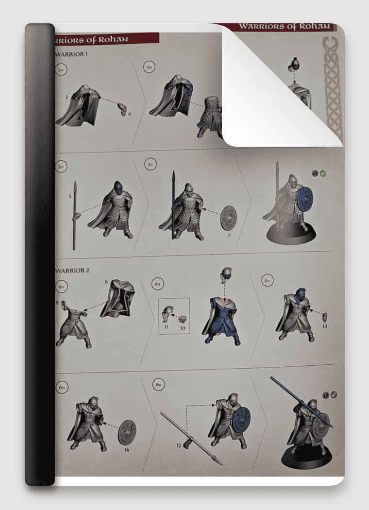 Includes a step-by-step user guide for how to build Warriors Of Rohan, New 2024, from plastic sprue, through to a completed model which is fully assembled and ready to paint.