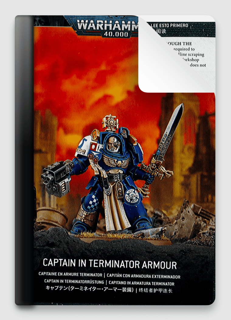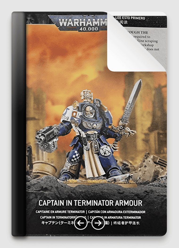 Includes a step-by-step user guide for how to build Captain In Terminator Armour, New 2023, from plastic sprue, through to a completed model which is fully assembled and ready to paint.