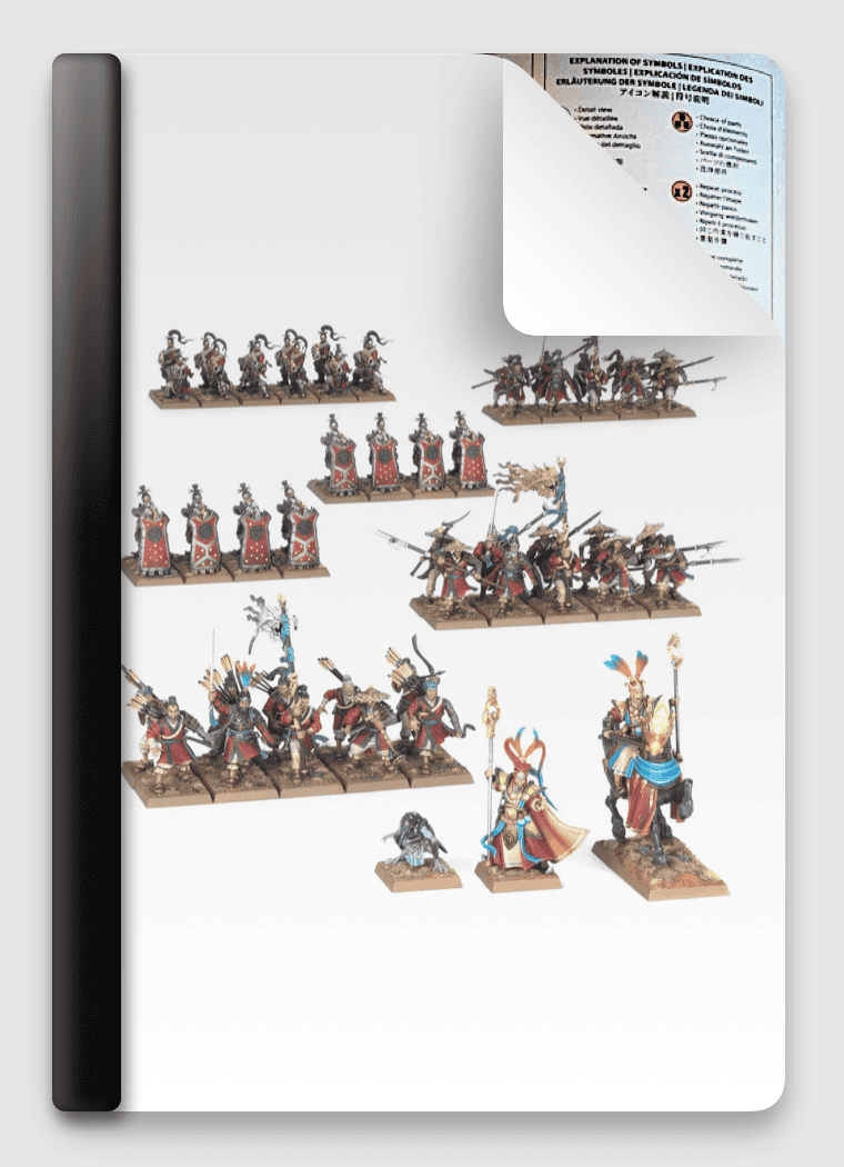 Includes a step-by-step user guide for how to build Defenders of the Great Bastion Army Reinforcement Set, from plastic sprue, through to a completed model which is fully assembled and ready to paint.