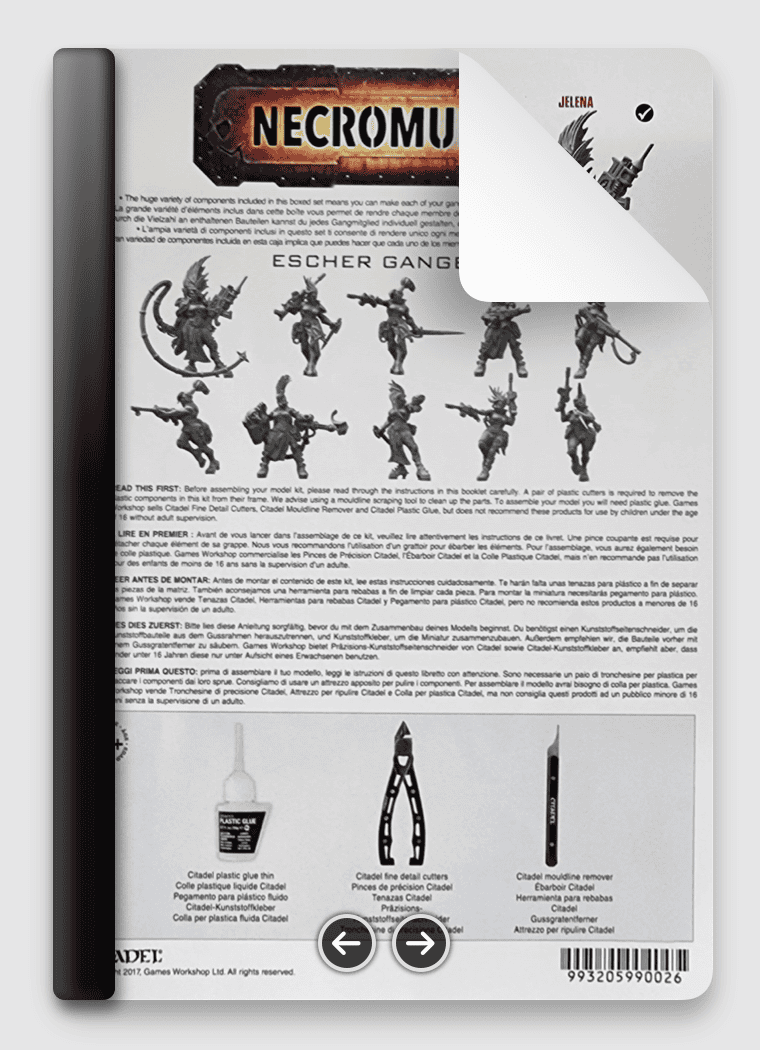 Includes a step-by-step user guide for how to build Escher Gang, from plastic sprue, through to a completed model which is fully assembled and ready to paint.