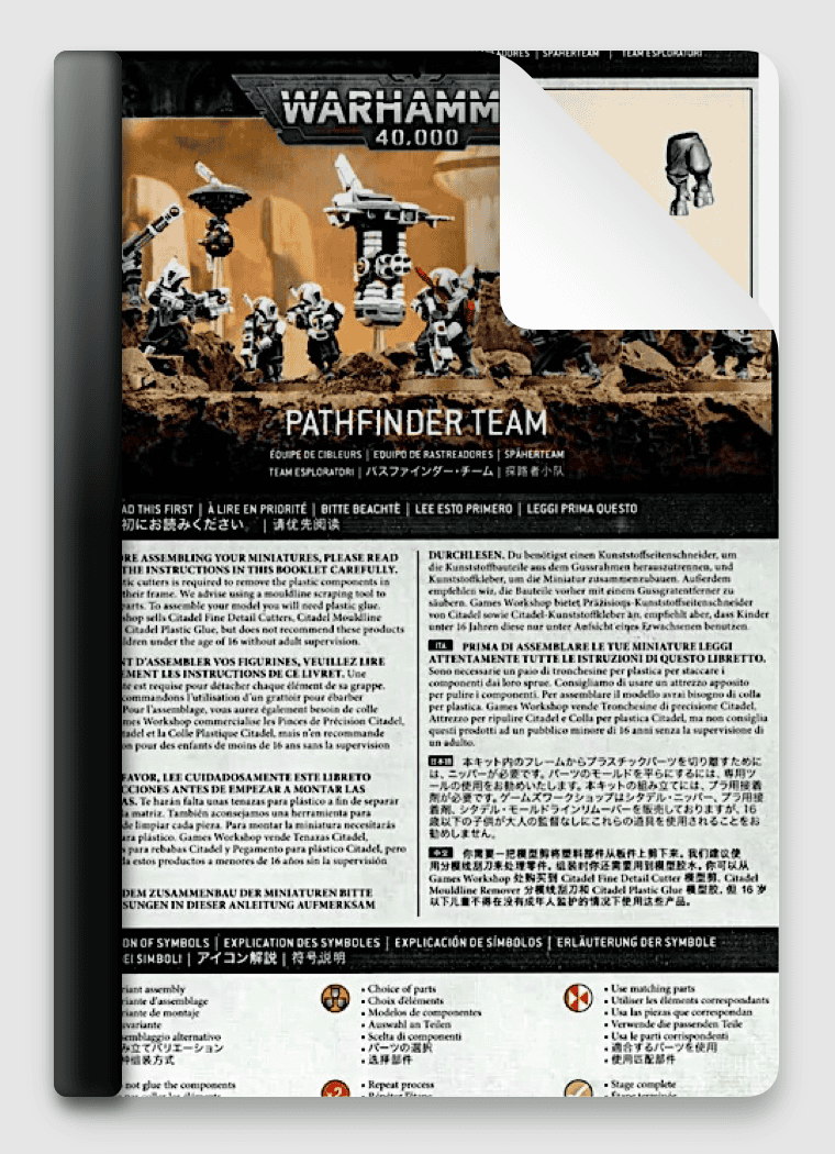 Includes a step-by-step user guide for how to build Pathfinder Team, from plastic sprue, through to a completed model which is fully assembled and ready to paint.