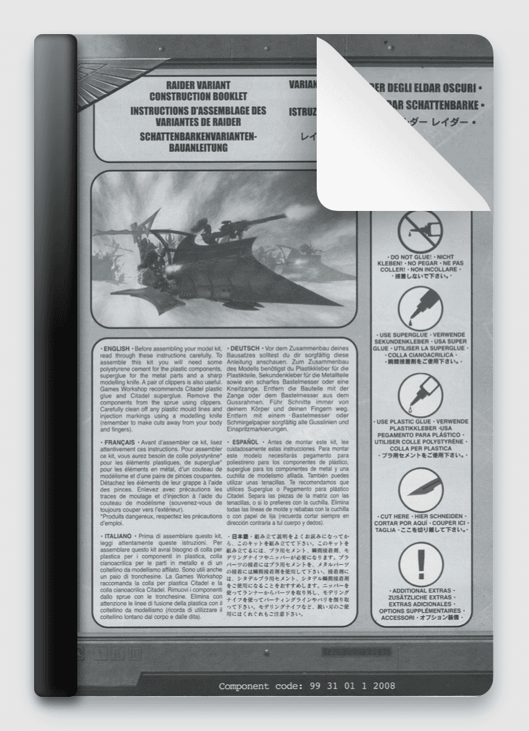 Includes a step-by-step user guide for how to build Raider, from plastic sprue, through to a completed model which is fully assembled and ready to paint.