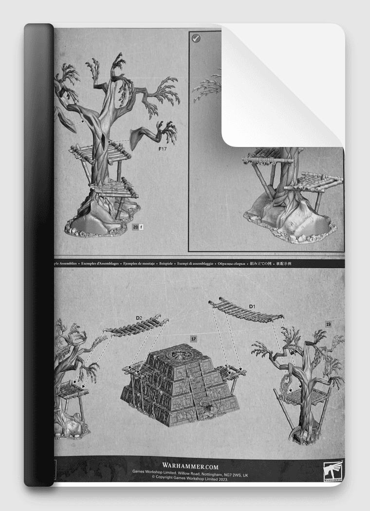 Includes a step-by-step user guide for how to build Ravaged Lands Ruined Realmshaper, from plastic sprue, through to a completed model which is fully assembled and ready to paint.