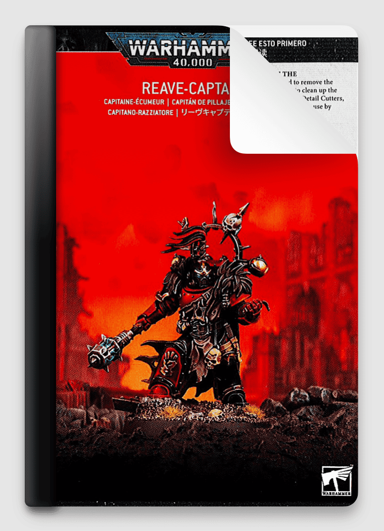Includes a step-by-step user guide for how to build Red Corsairs Reave-Captain, from plastic sprue, through to a completed model which is fully assembled and ready to paint.