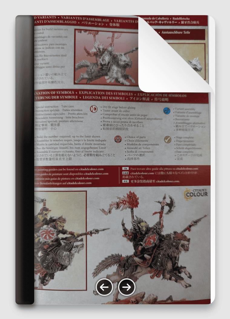 Includes a step-by-step user guide for how to build Snarlpack Cavalry, from plastic sprue, through to a completed model which is fully assembled and ready to paint.