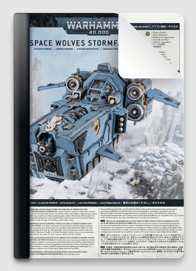 Includes a step-by-step user guide for how to build Stormwolf, from plastic sprue, through to a completed model which is fully assembled and ready to paint.