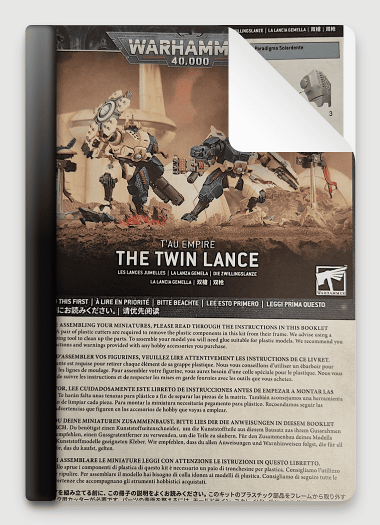 Includes a step-by-step user guide for how to build The Twin Lance, from plastic sprue, through to a completed model which is fully assembled and ready to paint.